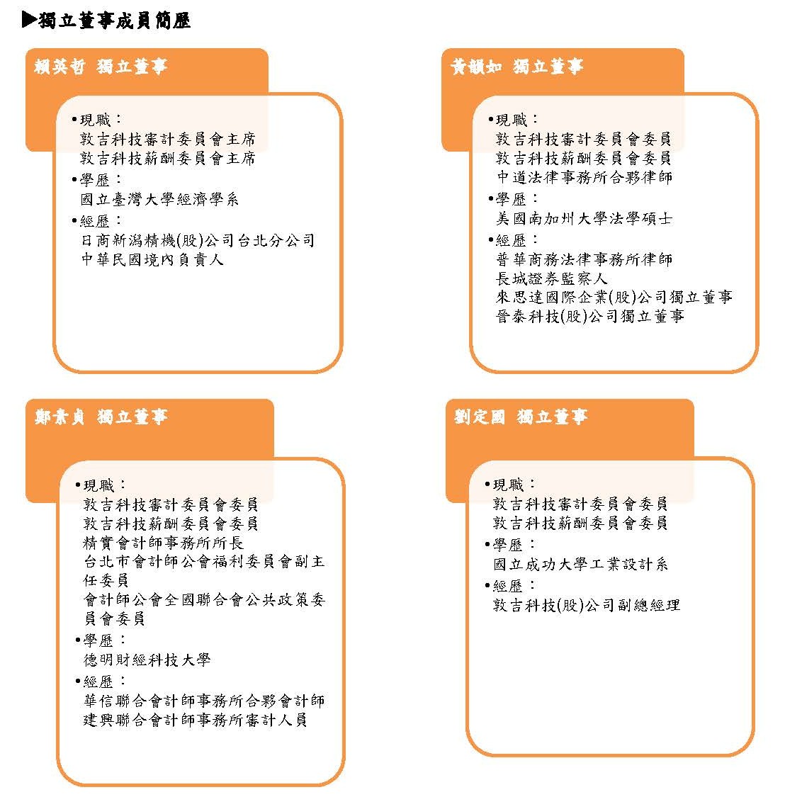 敦吉科技(股)公司經理 | u獨立董事成員簡歷